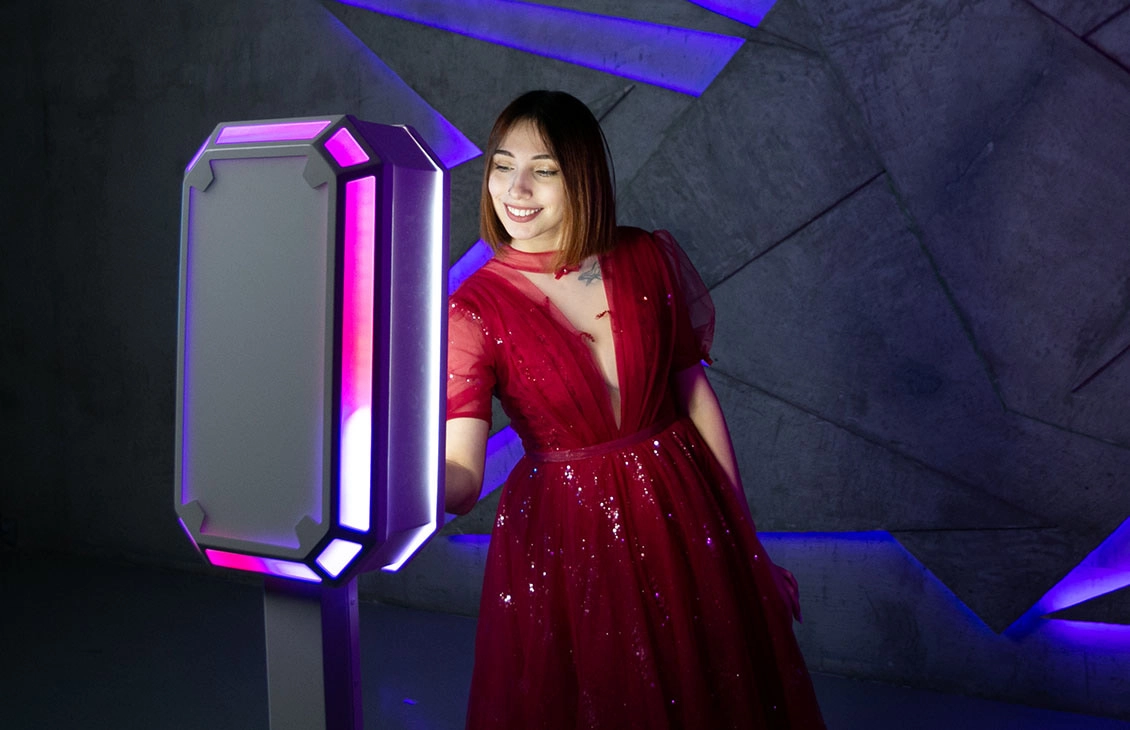 Эта функция создаёт уникальный фото-контент без необходимости в хромакеях или сложных декорациях. Фон меняется прямо на экране, обеспечивая яркие и эффектные фотографии для гостей.