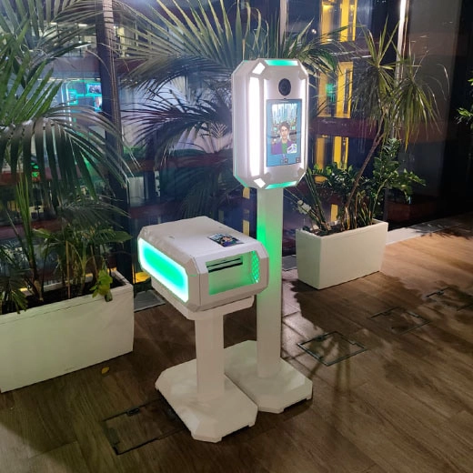 Фотобудка ИИ с нейросетью оснащена современной ножкой со встроенным LED-экраном. На экран можно вывести логотип, статичную картинку или динамичную анимацию, подчеркнув формат ивента. Также доступна персонализация заставки на сенсорном экране и брендирование рамочки для фото.